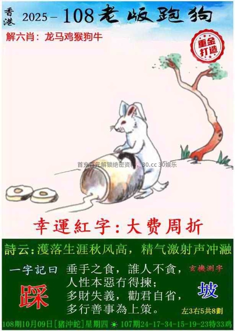 108期:吉凶两肖@凶丑+马鸡@开:猪07准